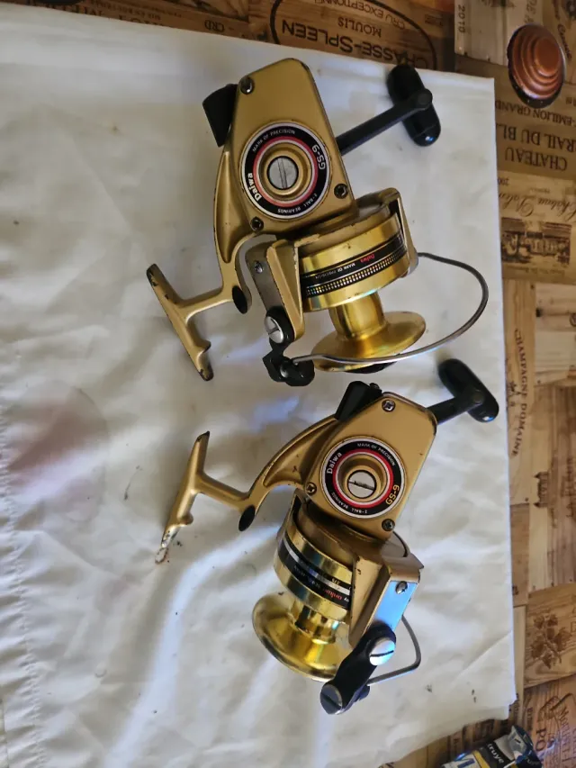 Se vende pareja de carretes de pesca Daiwa GS9. - Color dorado. - Modelo GS-9. - Marca Daiwa.