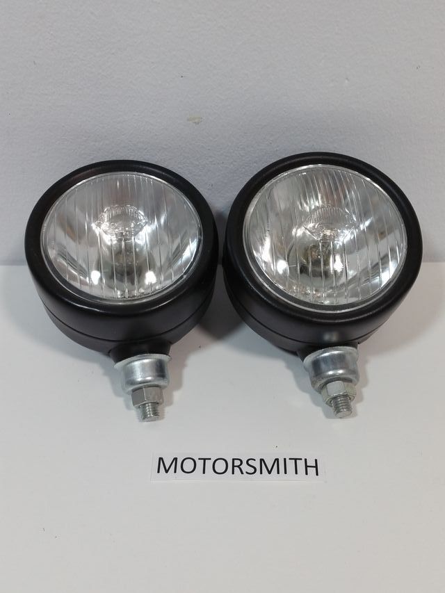 -Faros auxiliares completos NUEVOS marca SIM de color negro con soportes y bombillas 12v.