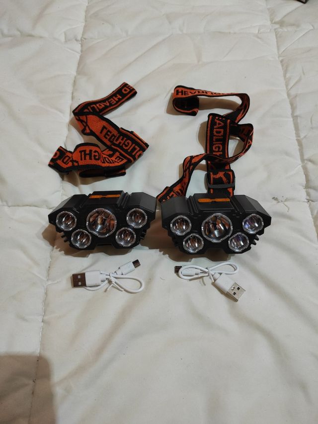 Detalles del productoHola, Se Vende pareja de Luces linterna a batería recargable, con sistema para colocar en la cabeza tipo minero con sus gomas, recargable mediante USB, se incluye batería, linterna, cargador y la cojida, linternas totalmente nuevas sin uso alguno, 4 modos de alumbrado, ideal talleres y mecánica automotriz.