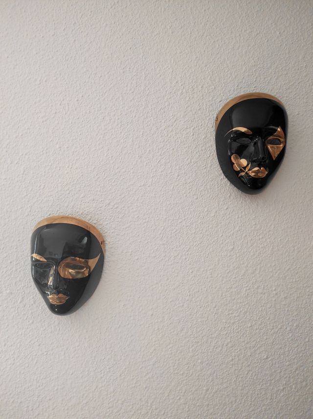 Pareja de máscaras venecianas de cerámica