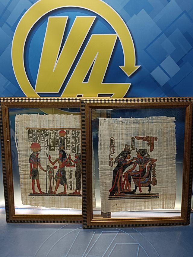 Pareja de papiros egipcios enmarcados. 48x58x3 cm.