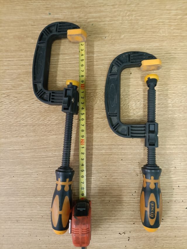 Se venden dos sargentos de carpintero, ideales para trabajos de bricolaje y carpintería. - Mango ergonómico para un agarre cómodo. - Mandíbula de apriete ajustable.