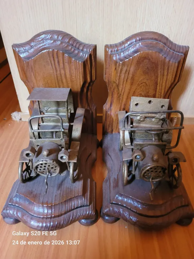 Detalles del productoOriginales sujetalibros con diseño de locomotora antigua. Fabricados en madera y metal.