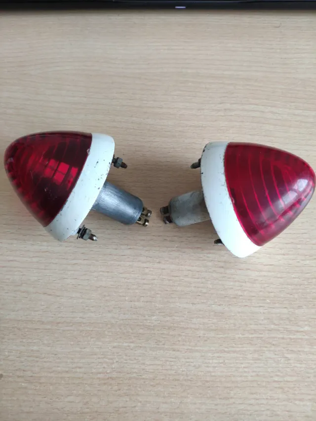 Se vende pareja de pilotos traseros Gemo de color rojo de. Son nuevos nunca usados con normales signos del paso del tiempo. La pintura blanca del contorno presenta algunas saltaduras debido a su almacenaje. Tulipas roscadas, base de metal. Pilotos clásicos o vintage.