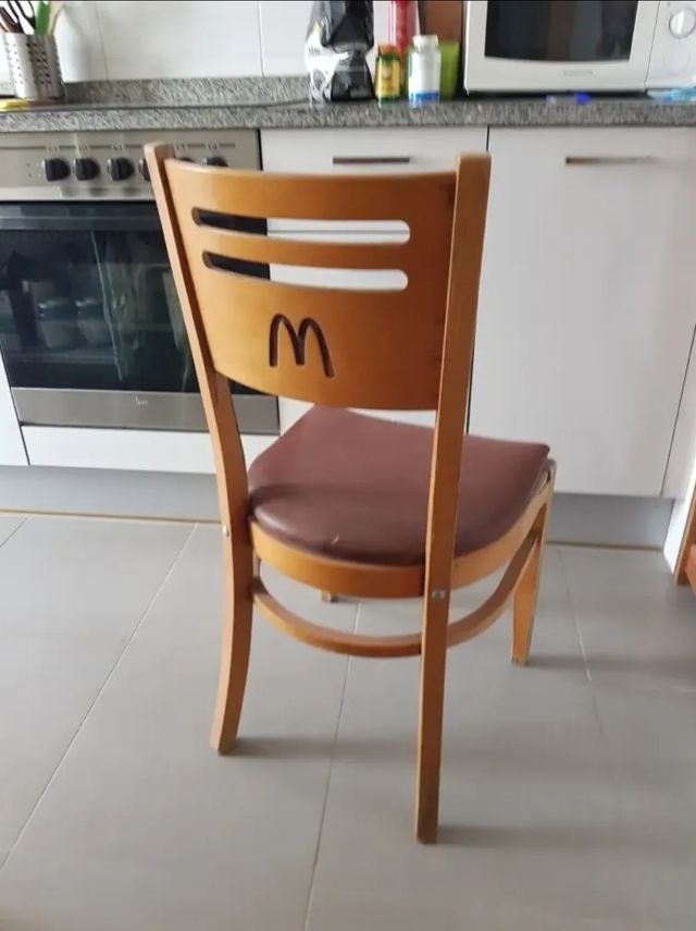 Detalles del productoSe venden dos sillas antiguas con el icónico logo de McDonald's.