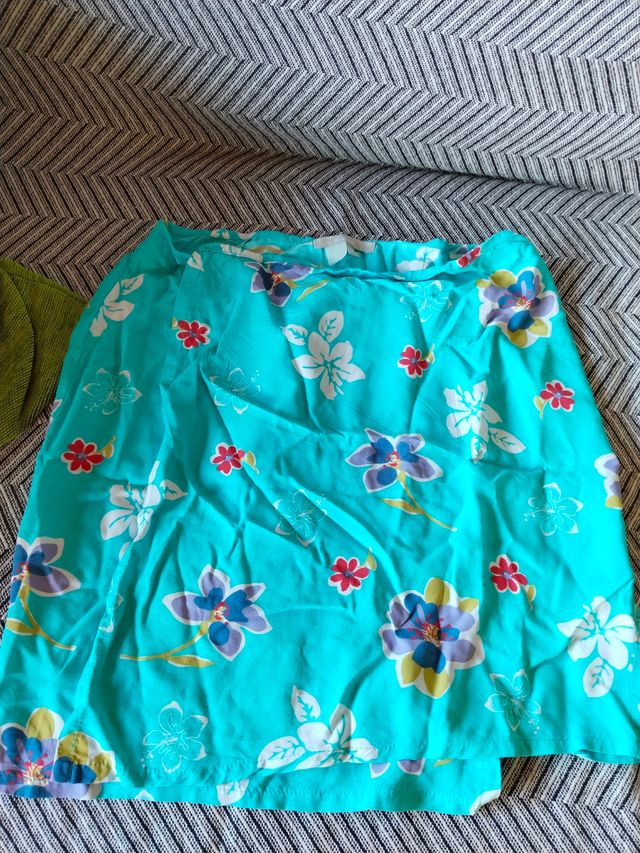 Detalles del productoPreciosa pareo de playa y para la cabeza. Es de color turquesa ,amarillo ,y uno tiene un bonito estampado de flores verdoso para el cabello .