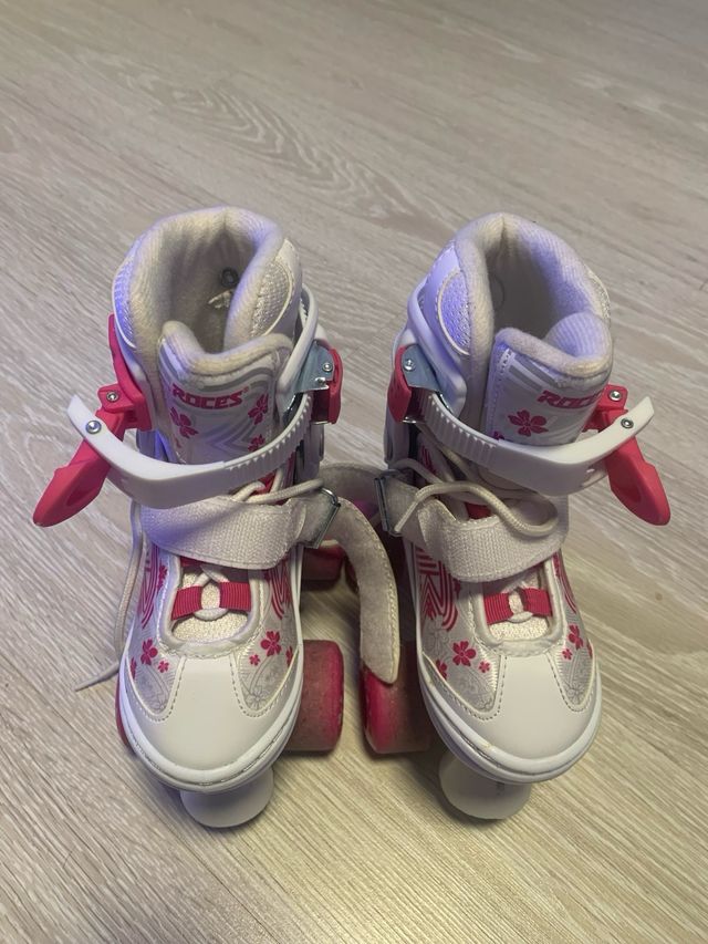 Detalles del productoPatines de niña con muy poco uso. Crecen con el pie, de la talla 26 a la 29. Medidas del producto