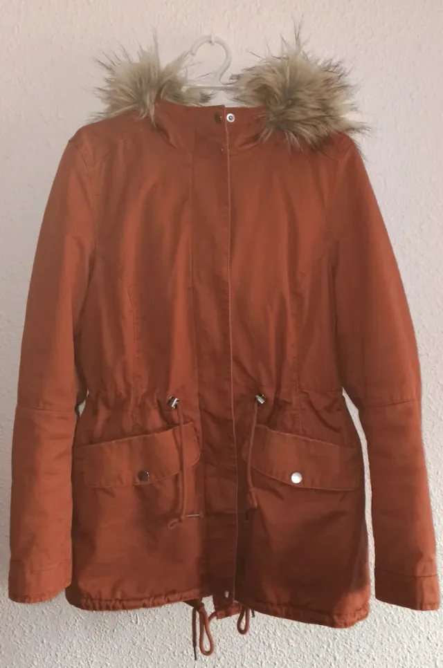 Parka marrón con capucha y pelo