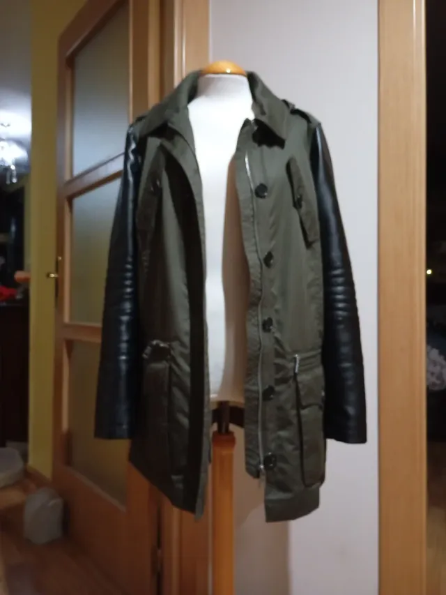 Parka verde con mangas negras polipiel