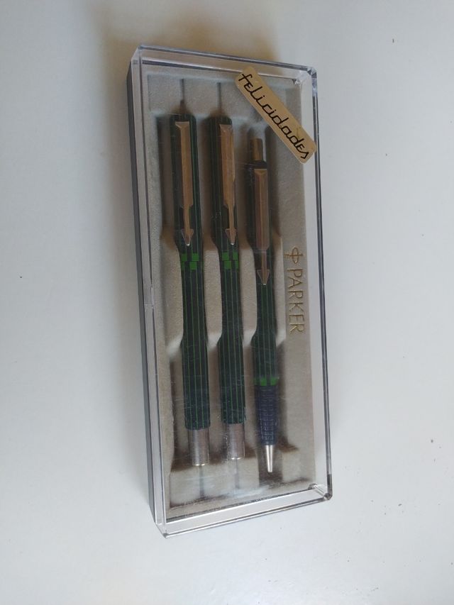 Detalles del productoPluma+Roller+Boligrafo Parker Vector rayas verdes.
