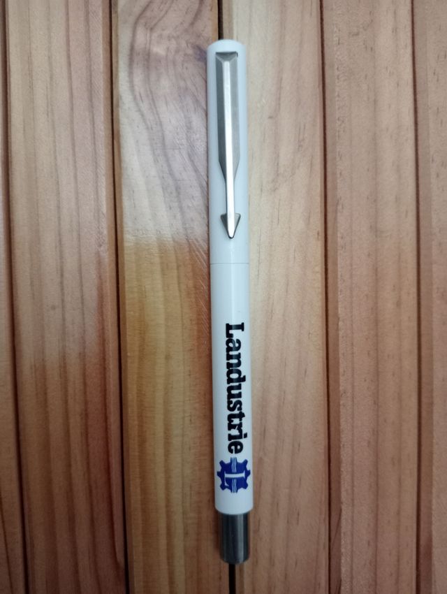 Detalles del productoBolígrafo roller Parker con publicidad de Landustrie. Un clásico para tu escritorio.