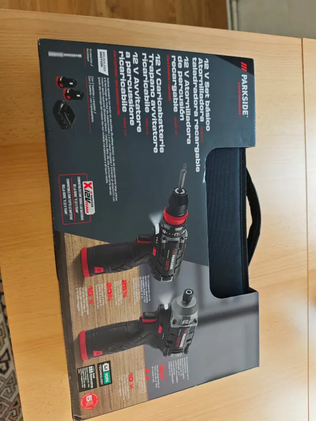 Detalles del productoSet de herramientas Parkside 12V que incluye un taladro atornillador y un atornillador de percusión.