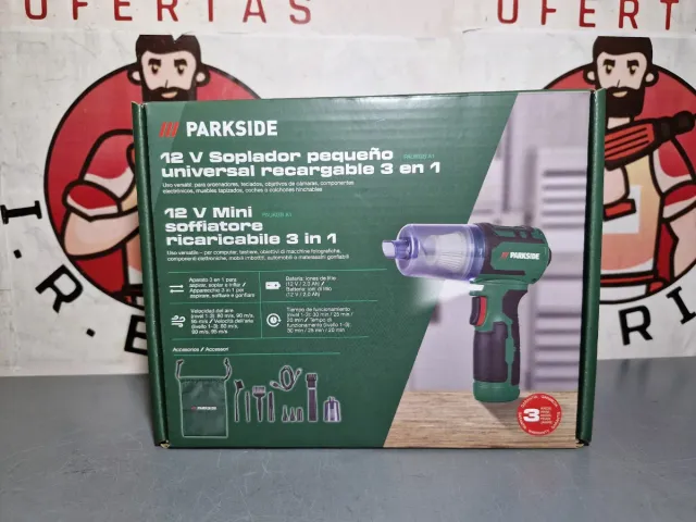 Detalles del productoSoplador, aspirador e inflador Parkside 12V, ideal para múltiples usos.