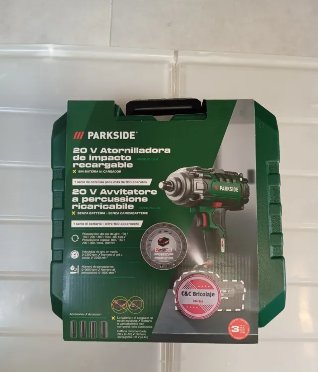 Detalles del productoAtornilladora de impacto recargable Parkside 20V.