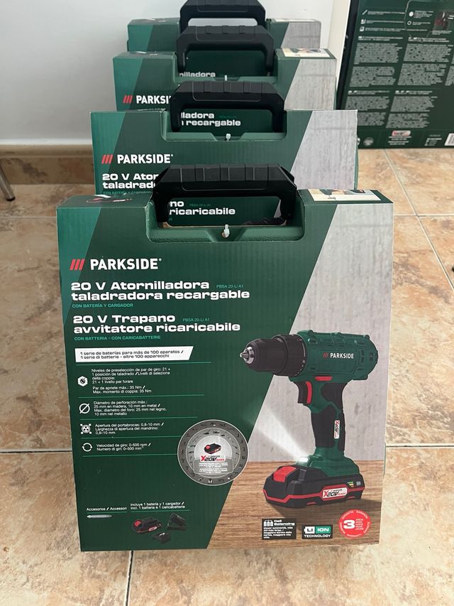 Detalles del productoAtornilladora taladradora recargable Parkside 20V.