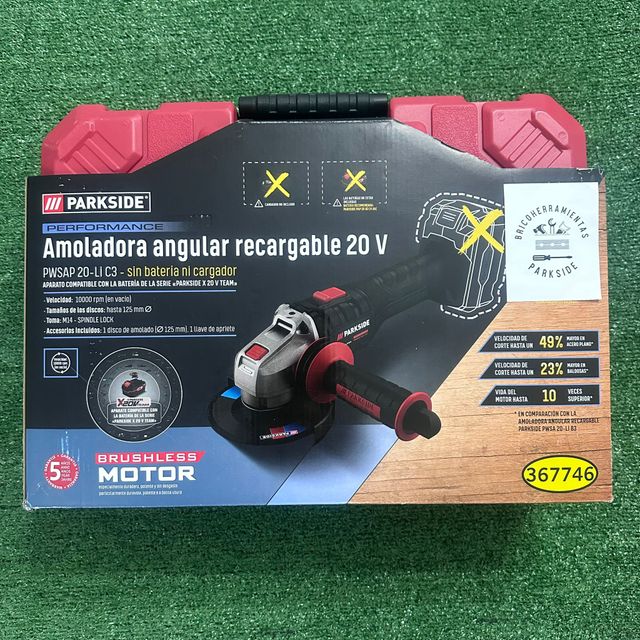 Detalles del productoAmoladora angular recargable Parkside Performance 20V.
