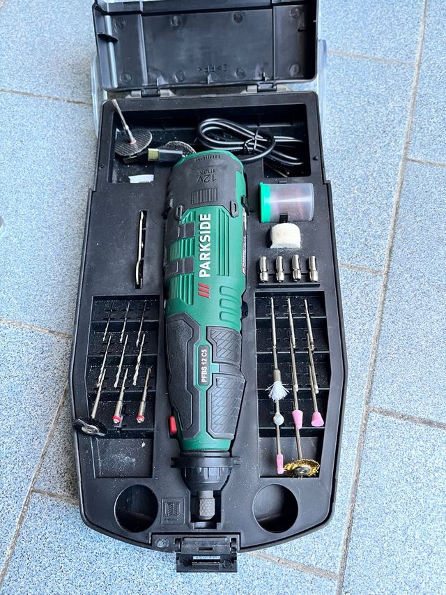 Detalles del productoDremel inalámbrica Parkside PFBS 12 C5, ideal para trabajos de precisión.