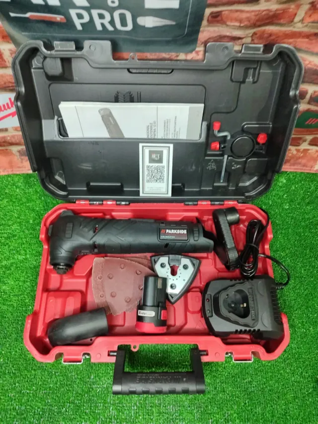 Detalles del productoHerramienta multifuncional Parkside Performance en su maletín.