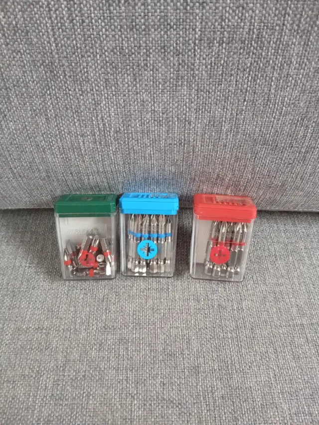 Detalles del producto3 Set de puntas de destornillador de la marca Parkside. Incluye tres estuches con diferentes tipos de puntas.