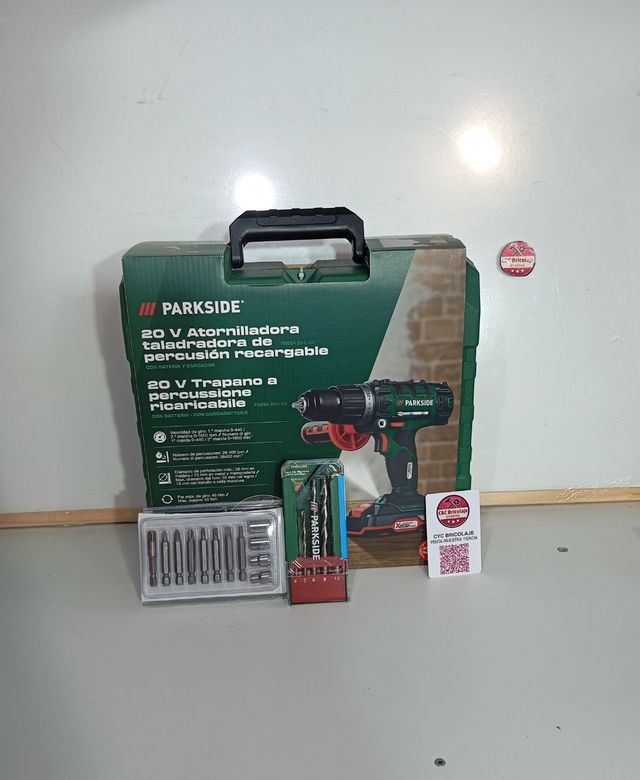 Detalles del producto✅Taladro percutor recargable Parkside 20V para hormigón completo con cargador y batería más brocas y set de puntas.