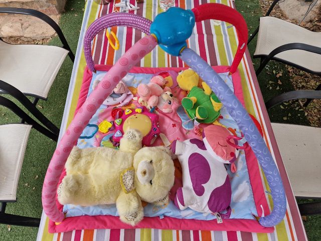 Detalles del productoParque para bebés acolchado como nuevo con juguetes y sonajeros incluidos.