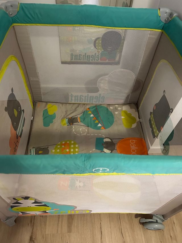 Detalles del productoParque y cuna de viaje cuadrada, incluye la mosquitera. Viene con su funda de viaje. Muy fácil de montar y muy cuidada.