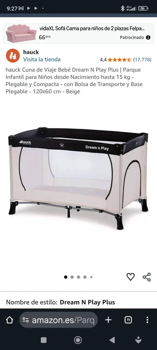 Detalles del productoParque cuna de viaje Hauck, modelo Dream N Play Plus. Es plegable y compacto, ideal para llevar a cualquier parte. Incluye bolsa de transporte y base plegable.