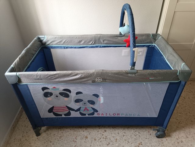 Detalles del productoParque de viaje con un divertido diseño de pandas marineros. Es fácil de montar y desmontar.