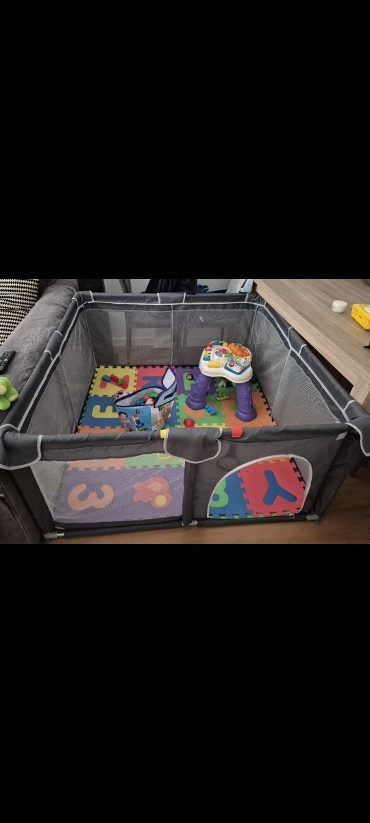 Parque infantil 120x120 cm con alfombra.