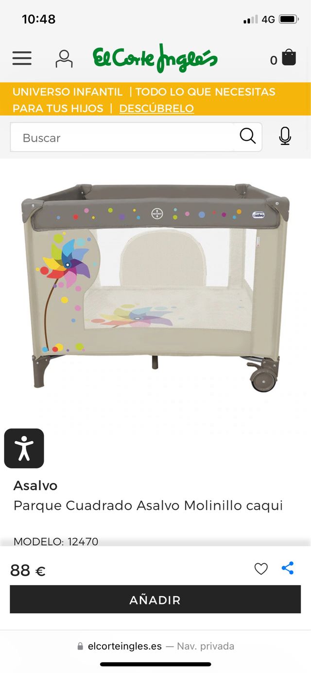Descripción del producto en fotos. Comprado en El Corte Inglés por 88€. Casi sin uso, mi hijo no ha querido parque.
