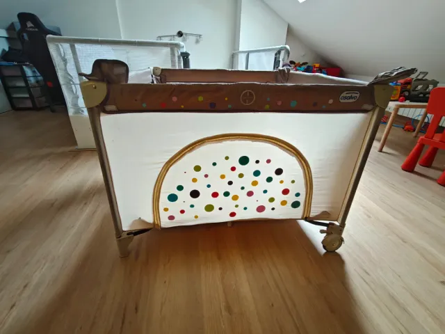Detalles del productoParque infantil cuadrado de la marca Asalvo, modelo Molinillo. Presenta un diseño divertido con círculos de colores.