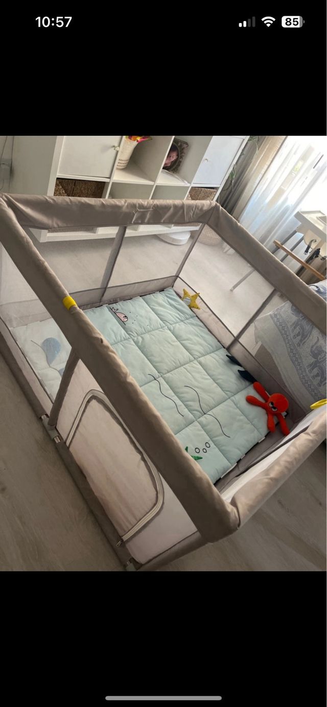 parque 120 x 120 cm con alfombra de ikea klappa