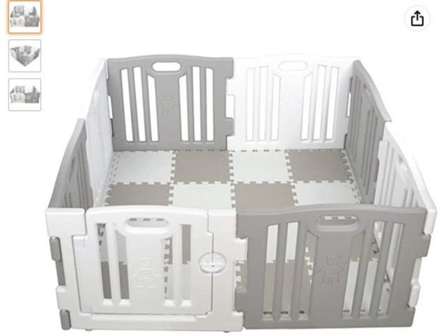 Detalles del productoParque infantil de plástico en dos tonos, blanco y gris. Ideal para crear un espacio seguro para los más pequeños.