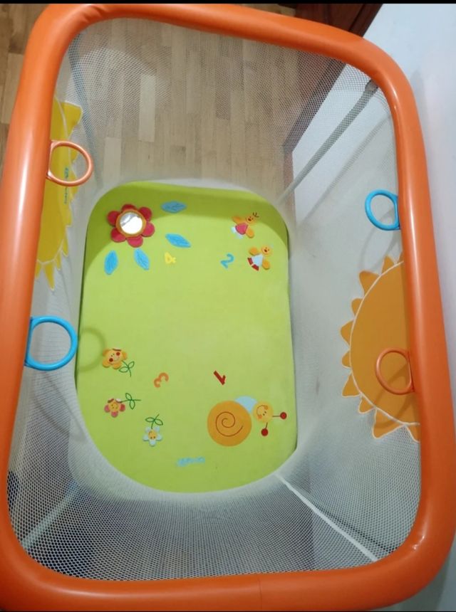 Parque infantil con colchoneta desmontable y lavable. Se pliega para no ocupar espacio.