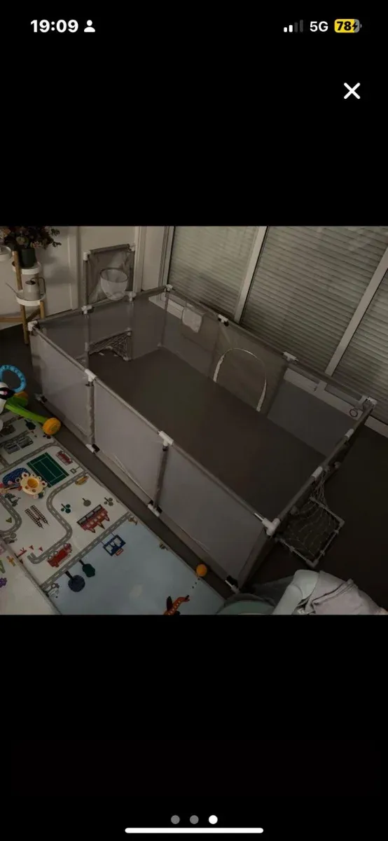 Parque infantil bebé con canasta y portería.