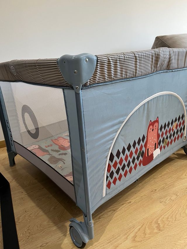 Detalles del productoParque infantil con un divertido diseño de zorros y rayas.