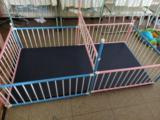 Detalles del productoParque infantil, medidas 2,49 largo x 1,25 ancho x 66 alto. la colchoneta 2,50 largo, es muy grande y con bastante grosor, sirve también para sala de psicomotricidad, como valla de agarre para primeros pasos.
