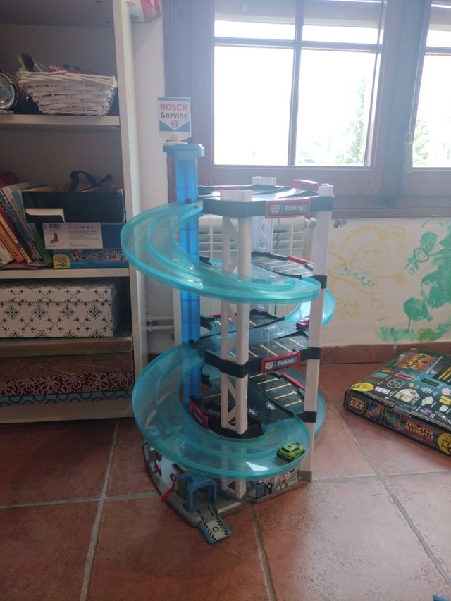 Detalles del productoAparcamiento de coches de juguete en perfecto estado. Incluye una rampa en espiral y varios niveles de aparcamiento. Es un juguete muy divertido y colorido, ideal para niños y niñas.