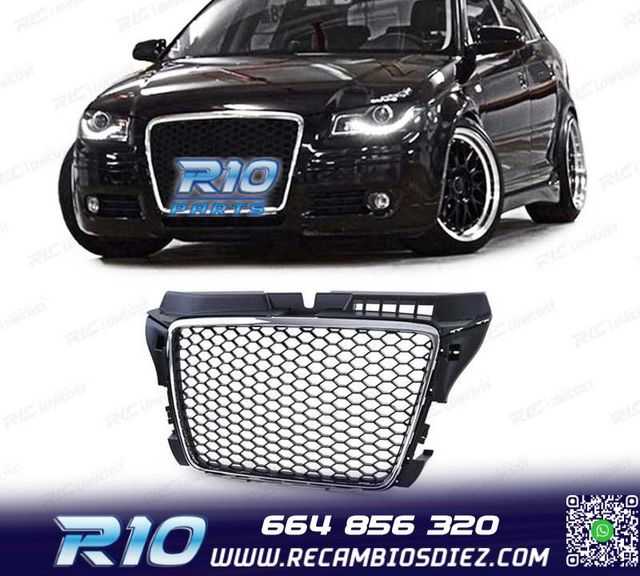 PARRILLA AUDI A3 8P 08-12 LOOK RS3 NEGRO CROMO