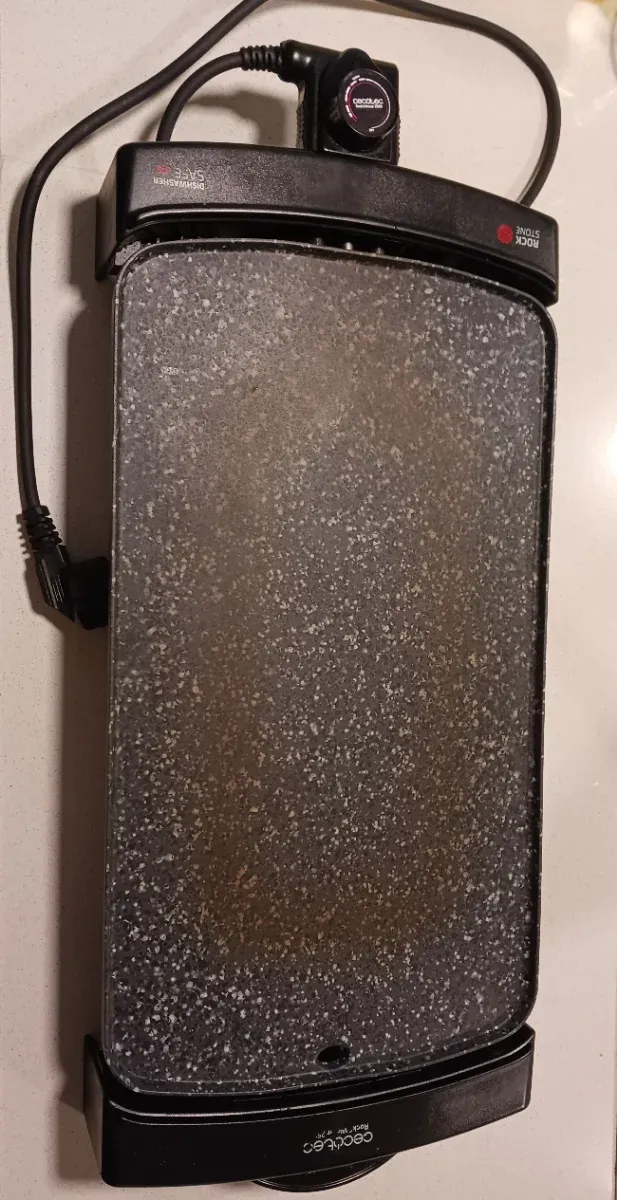 Parrilla eléctrica Cecotec con superficie antiadherente. - Potencia: 1800W. - Termostato regulable. - Superficie Rockstone.