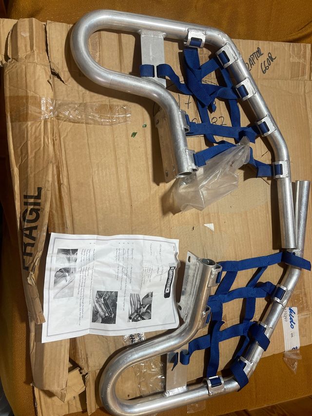 Juego de parrillas GOLDSPEED para Yamaha YFZ 450. - Fabricadas en aluminio. - Incluyen red de sujeción azul. - Diseñadas para montaje en el chasis.