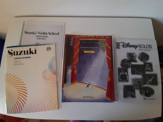 - Incluye los métodos Suzuki (volumen 1 y 2) y Le Petit Paganini (volumen 1).