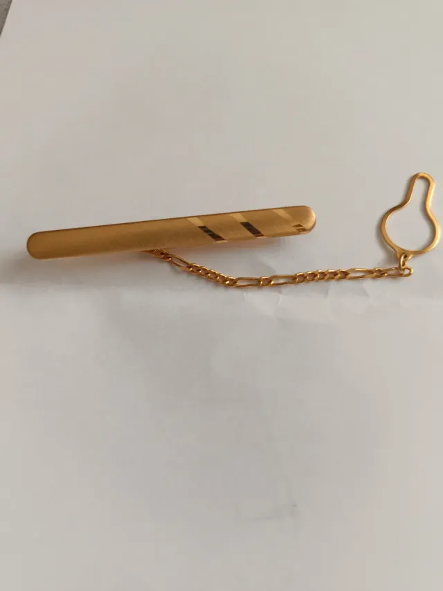 Pasador de corbata dorado con cadena