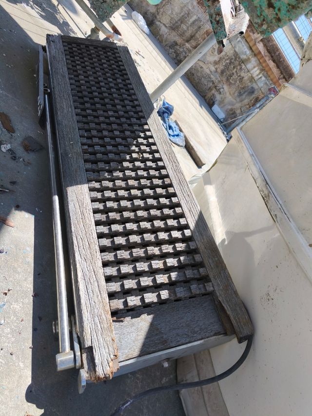 Detalles del productoPasarela de acceso de popa de acero inoxidable extensible y basculante de la marca Optimar. Ideal para embarcaciones. Se encuentra en buen estado, aunque presenta señales de uso en la madera. Para cilindro hidráulico ,se vende sin el cilindro hidráulico.