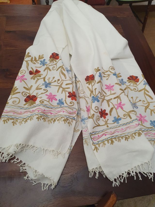 Pashmina blanca bordada flores