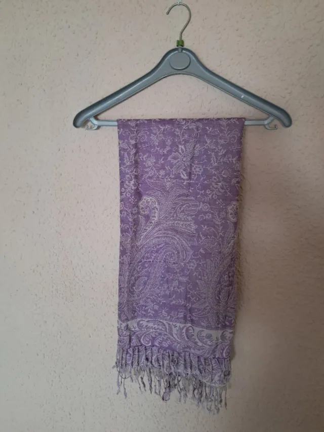 Pashmina morada con flecos