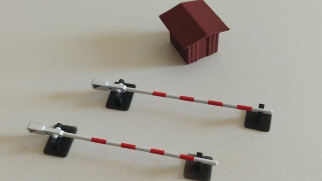 Replica del paso a nivel de Ibertren escala N con base para los Iberamas 801-802, aunque sirve para cualquier maqueta.