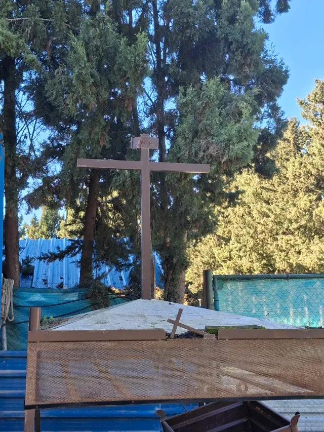 Paso de Semana Santa. -metálico -con ruedas en sus 4 patas -llamada e forma de cruz