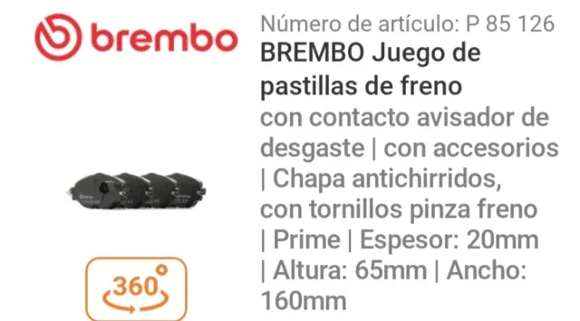 Detalles del productoJuego de pastillas de freno Brembo P85126.