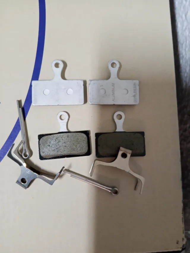 Detalles del productoConjunto de pastillas de freno de disco para bicicleta. Incluye dos pares de pastillas y sus respectivos muelles.